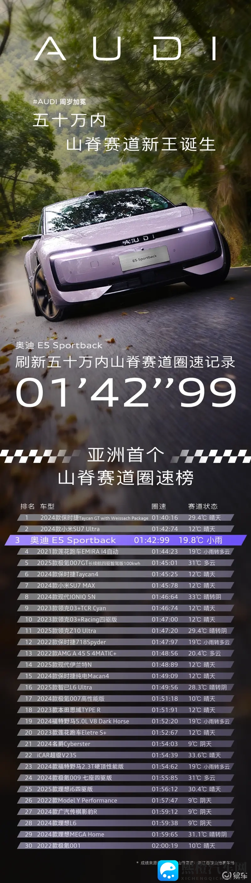 奥迪 E5 Sportback山脊封王,刷新圈速纪录